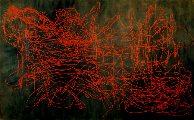 NATURAL SELECTION No. 20, 2001 39.5" x 64". Oil, vegetable dye and wax on cotton
