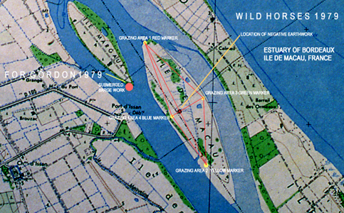| WILD HORSES, Earthwork, Ile de Macau, Estuary of Bordeaux, France, sponsored by C.R.A.C.A.P /Centre de Recherche National des Arts Plastiques, and the Neue Museum, Aachen, Germany. 1978 | |||||||||||||||||||||||